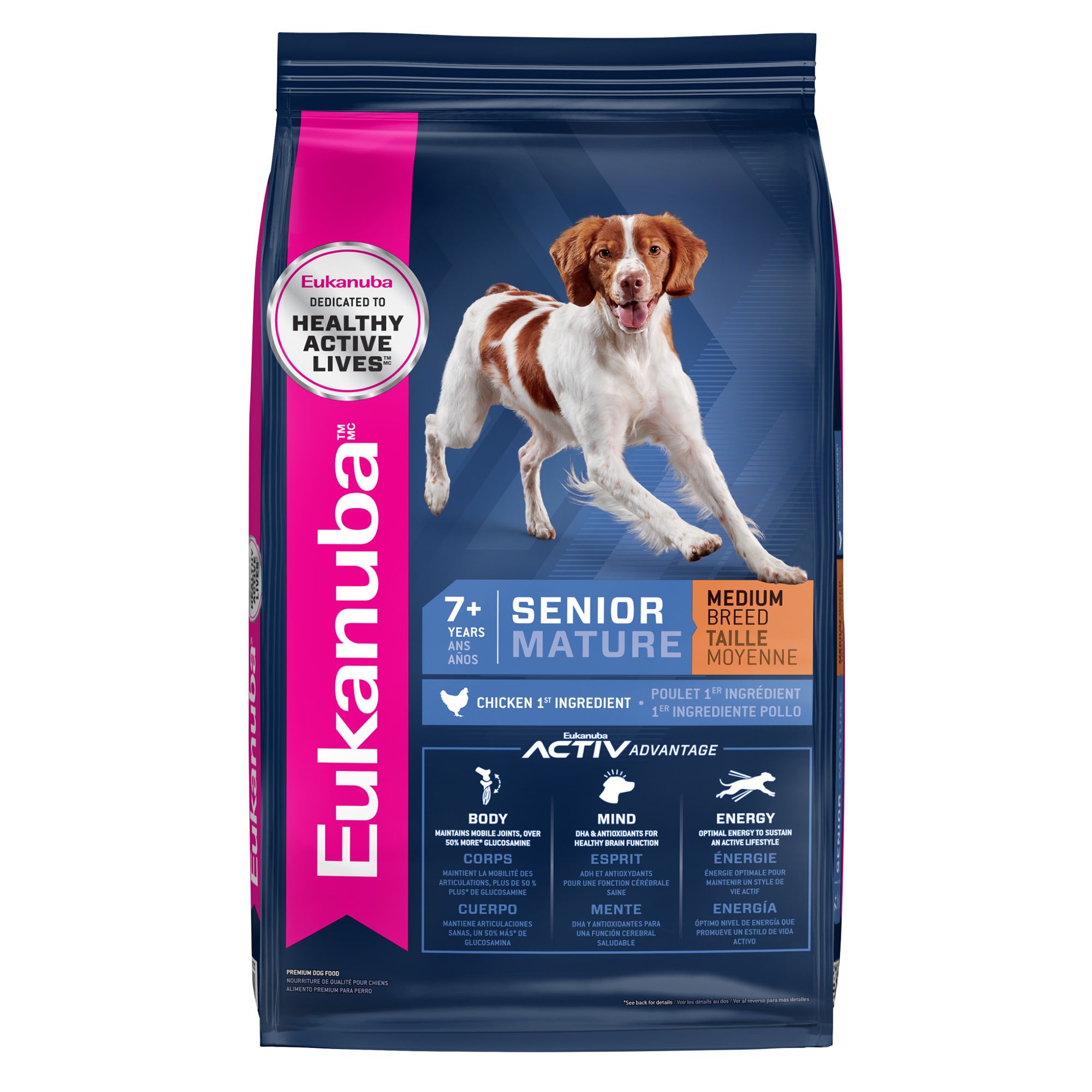 Description: Provide the complete and balanced nutrition your big dog needs to help them live an active life with each serving of Eukanuba Fit Body Weight Control Large Breed Dry Dog Food. If your dog has a tendency to gain weight, you can be confident that Eukanuba Fit Body large breed dog food is tailored for your adult dog's specific energy and weight management needs. It's formulated with L–carnitine, 27% less fat (versus Eukanuba Large Breed Dry Dog Food), and an adapted blend of carbohydrates to support lean muscle mass. This dog dry food formula also delivers DHA and vitamin E, helping to support healthy brain function. With animal protein, chondroitin sulfate, and glucosamine, this weight control dog food helps support your big dog's muscle and joint health to help keep them on the move. Plus, chicken is the first ingredient, because your lively dog deserves high–quality protein. With over 55 years of scientific research and innovation, Eukanuba continuesto deliver targeted nutrition to feed every pet. Help unleash your dog's full potential with Eukanuba Fit Body Weight Control Large Breed dry dog food – satisfaction guaranteed.