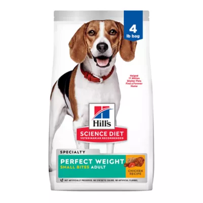 Nutritional Benefits: Hill's Science Diet Adult Perfect Weight Small Bites Chicken & Brown Rice Recipe dry dog food provides delicious, breakthrough weight management nutrition with clinically proven technology in a small bite size.