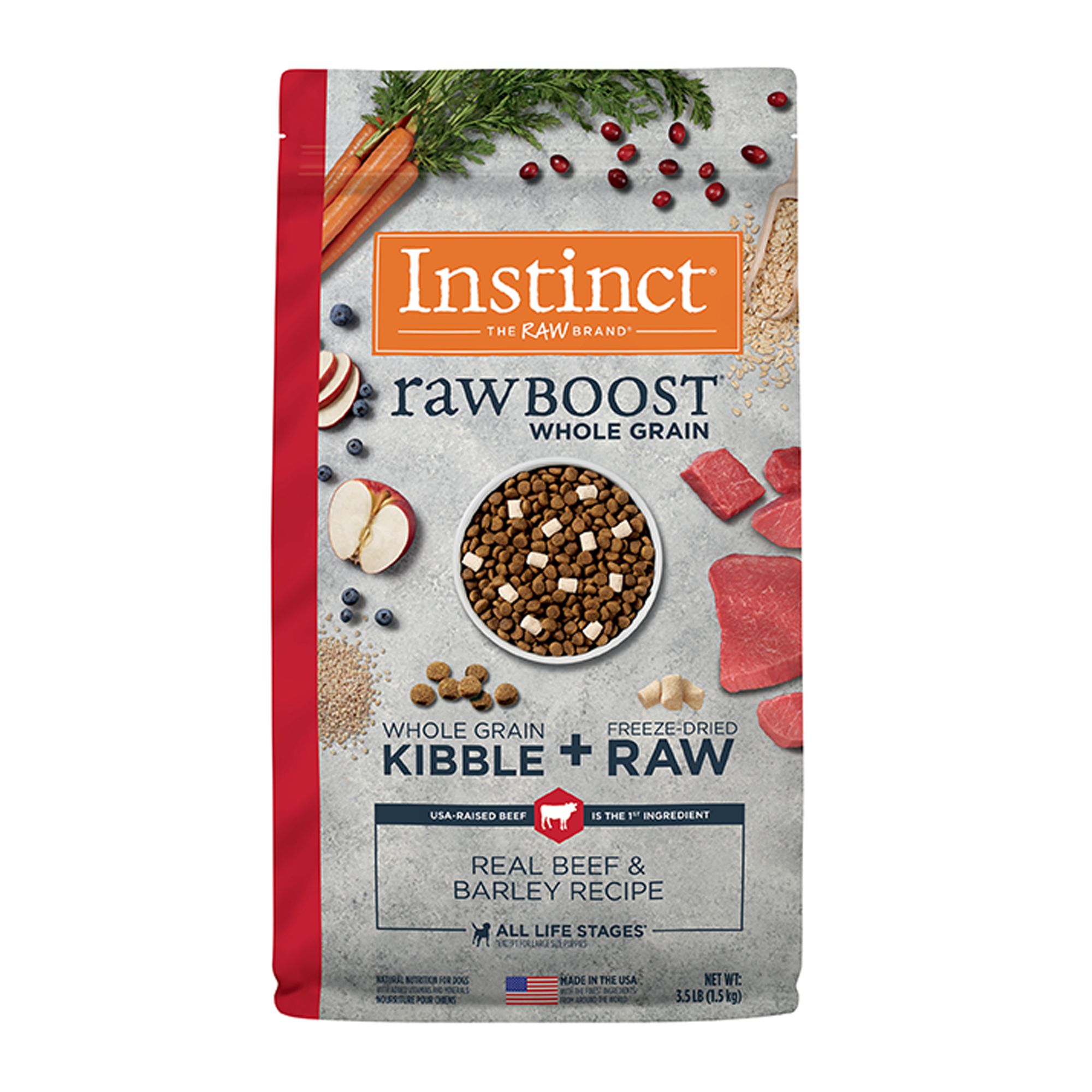 "Instinct Be Natural Beef & Barley Dry Dog Food, 25 lb. Bag - Natural nutrition begins here. Instinct Be Natural Real Beef & Barley Recipe starts with USA-raised beef and never contains filler, corn, wheat, soy or by-product meals or artificial preservatives and colors. Guided by our belief in the power of raw, each piece is tumbled with crushed freeze-dried raw beef - raising the bar in nutrition and taste. Available Varieties: USA-raised beef, cage-free chicken, grass-fed lamb, real salmon