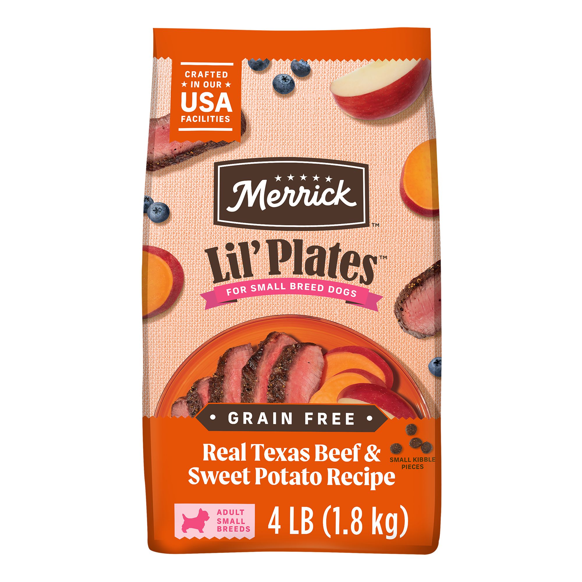 Serve your dog food they will love with Merrick Limited Ingredient Diet Grain Free Dry Dog Food, Real Lamb And Sweet Potato Recipe. Real deboned lamb is the first ingredient in this premium grain free dry dog food with single source animal protein. This holistic blend of kibble provides a high protein dog food option that helps support lean muscle mass and healthy energy levels. Crafted with purposeful real ingredients, this limited ingredient dog food is made specifically for dogs with sensitivities and contains no corn, wheat, soy, or artificial colors, flavors, or preservatives. Merrick lamb and sweet potato recipe dog food for adult dogs is natural with added vitamins, minerals, and nutrients and contains high levels of Omega fatty acids to help support your dog's healthy skin and coat and high levels of glucosamine and chondroitin to support healthy hips and joints. Merrick dog food recipes are proudly founded in Hereford, Texas, crafted in USA facilities.