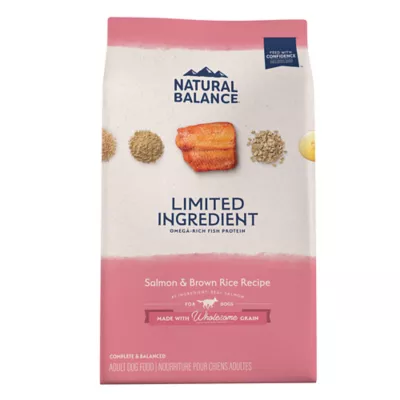 Help bring out your best bud's best with the select, simple, premium ingredients and delicious taste of Natural Balance L.I.D. Limited Ingredient Diets Salmon & Brown Rice Formula Dry Dog Food. This grain-inclusive premium dog food is made with no gluten ingredients. The first ingredient is real salmon, which provides amino acids - to help build the strong muscles your dog needs to make the most of your adventures together. Meanwhile, whole-grain brown rice contains fiber to help support healthy digestion. And with essential vitamins and minerals, this delicious salmon and brown rice formula dog food is complete and balanced for adult dogs of all sizes. To top it all off, like all Natural Balance products, it's backed by our "Buy With Confidence" promise, so you can rest assured that it's healthy, tasty and safe.