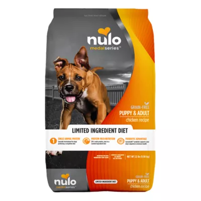 Sensitive dogs are athletes too, and deserve high quality, tasty nutrition without compromise That's why Nulo MedalSeries Limited Ingredient Diet Chicken Recipe is designed with 30% crude protein from a single animal source, and without common ingredients like corn, wheat, other grains, soy, artificial flavors, colors, or preservatives. We've added the unique BC30 probiotic and paired it with preprobiotic fibers, antioxidants, and high-quality Omega-3 & -6 fatty acids to support your dog's digestive, immune, skin & coat health. And with 51% of every cup coming from deboned chicken and chicken meal, this recipe contains plenty of animal-based protein that will help your dog feel his or her very best. Available in 4 lb, 10 lb, & 22 lb bags.