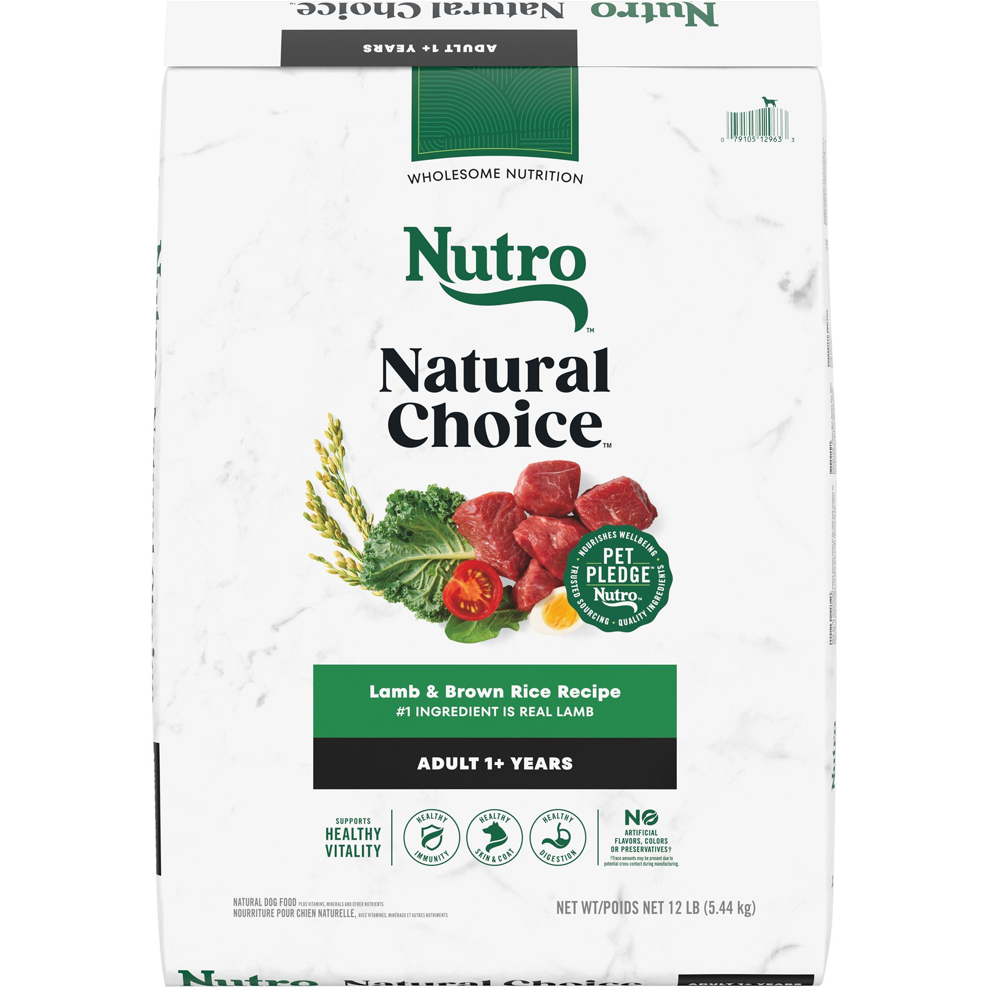 Supports Healthy Skin & Coat: This dry dog food is formulated with an optimal ratio of Omega–3 and Omega–6 Fatty Acids to nourish sensitive skin for a soft shiny coat guaranteed in 25 days, 100% satisfaction guaranteed or your money back.Supports Healthy Digestion: Nutro Natural Choice Adult Dry Dog Food, Lamb & Brown Rice Recipe is made with natural fiber for healthy digestion.Healthy Immunity: This natural dog food has guaranteed levels of antioxidants like Vitamin E and Selenium to promote healthy immunity.Supports Whole Body Health: Nutro Natural Choice Adult Dry Dog Food is a nutrient–rich recipe made with essential nutrients and antioxidants to support whole body health.Lamb #1 Ingredient: This dry dog food recipe is made with lamb as the #1 ingredient, bringing a familiar flavor your dog will love.Wholesome Ingredients: Nutro Natural Choice Adult Dry Dog Food is made without corn, wheat, or soy products, making it a healthy choice.Contains: Contains one (1) 30 lb. bag of Nutro Natural Choice Adult Dry Dog Food, Lamb & Brown Rice Recipe.Species: DogBrand: Nutro