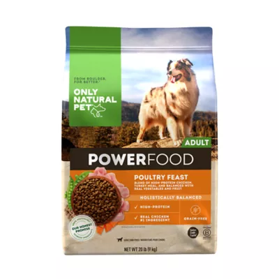 Only Natural Pet PowerFood Poultry Feast is a blend of high-protein chicken, turkey meal, and balanced with real vegetables and fruit. Our powerfood blend is a proprietary coating that offers your dog a delicious boost of flavor and probiotics to help support a healthy gut and vibrant health. We believe that what we leave out of our food and treats is just as important as what goes in. That&39;s why we have a strict set of standards for our ingredients, ensuring we only use the best. Only at PetSmart.
