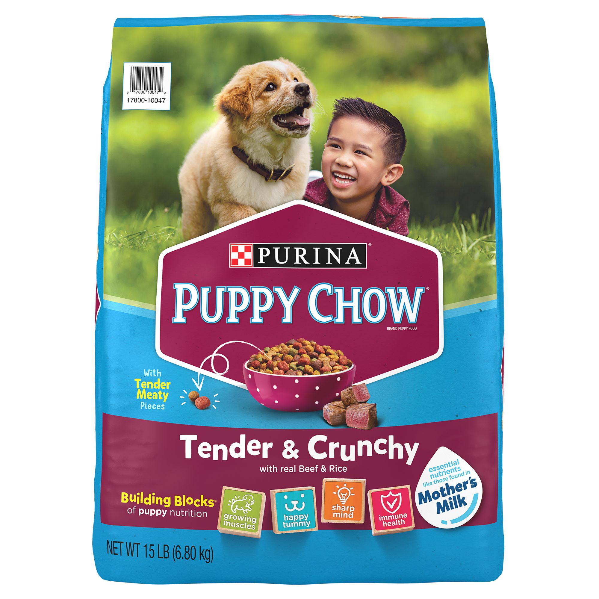 Key Benefits: Real chicken is the first ingredient in this dog food for puppies to help provide the protein he needs for strong, growing muscles, including a healthy heart, Purina ONE puppy kibble made with DHA, a nutrient found in mothers' milk, to support vision and brain development and four antioxidant sources to support a healthy immune system, Easily digestible puppy dog food featuring a SmartBlend of high-quality ingredients, including omega-6 fatty acids, vitamins and minerals, for a shiny coat and healthy skin, Deliciously crunchy bites and tender meaty morsels deliver great taste in this Purina puppy dry food formula made with no artificial flavors or preservatives, Purina ONE dry dog food for puppies crafted in Purina-owned, U.S. facilities provides 100 percent nutrition for puppies with 0 percent fillers, so every ingredient has a purpose, Spoil your pet with Purina products. Reward yourself with points on every purchase. Download the myPurina app today
