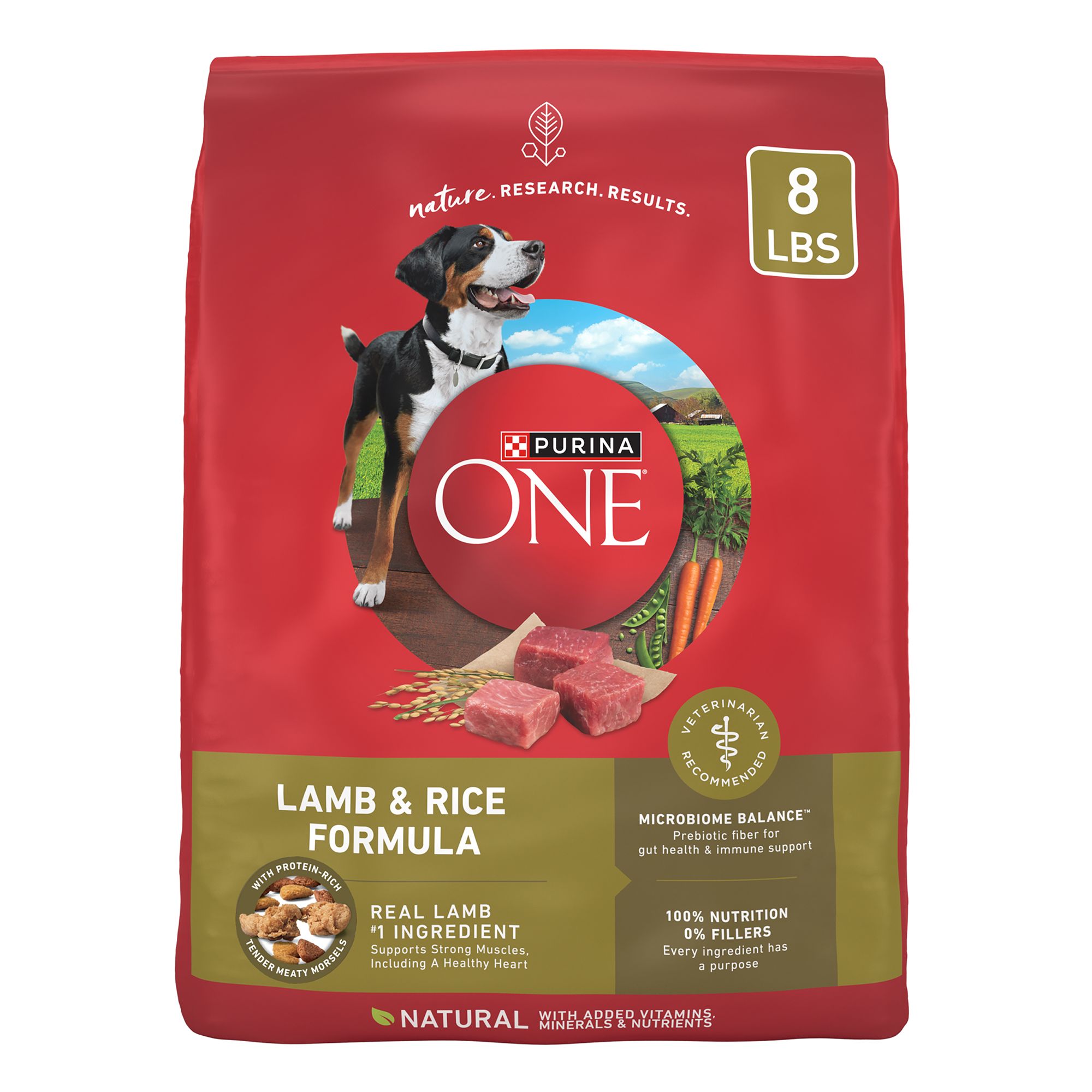 Provide your small dog with the right adult dog food nutrition with Purina ONE Plus Small Breed Dog Food Lamb and Rice Formula Natural With Added Vitamins, Minerals and Nutrients adult dry dog food. Real lamb is the first ingredient in this adult dog food with no fillers artificial flavors or preservatives, so every high-quality ingredient has a purpose. Formulated to support small dogs' health and energy, this dog kibble offers a nutrient-dense formula with four antioxidant sources to provide immune support for dogs. Omega-6 fatty acids, vitamins and minerals in this dry dog food for small dogs support healthy skin and a shiny coat. Every serving of this high protein dog food includes 100 percent complete and balanced nutrition for adult dogs and supports strong muscles, including his healthy heart. Crunchy kibble and tender meaty morsels combine in this Purina ONE dog food lamb and rice formula to keep him coming back to his bowl for this veterinarian-recommended brand.