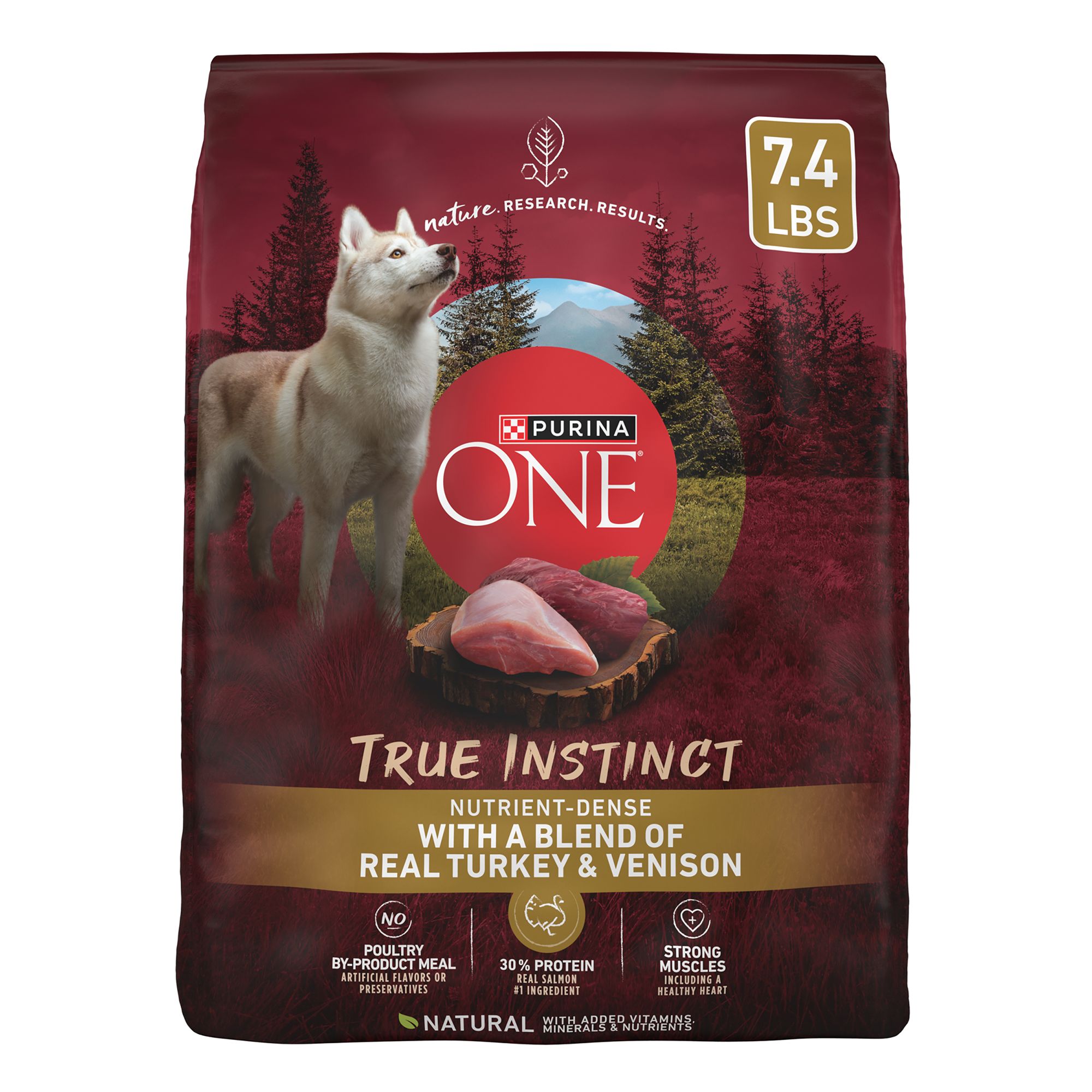 Feed your dog's true instincts with Purina ONE True Instinct With Real Salmon and Tuna Formula Natural With Added Vitamins, Minerals and Nutrients dry dog food. Real salmon is the number 1 ingredient in this adult dog food, which includes real tuna in every serving. With 100 percent nutrition for adult dogs and 0 percent fillers, every high-quality ingredient has a purpose. This nutrient-dense formula contains 30 percent protein to support strong muscles, plus natural sources of glucosamine for dogs to support dog joint health. Together, they help craft a complete and balanced dog food full of the wholesome goodness your adult dog needs to keep up with his active lifestyle. Omega-6 fatty acids in this high protein dry dog food also support his healthy skin and a radiant coat. Purina ONE crafts wholesome dog food with no artificial flavors or preservatives.