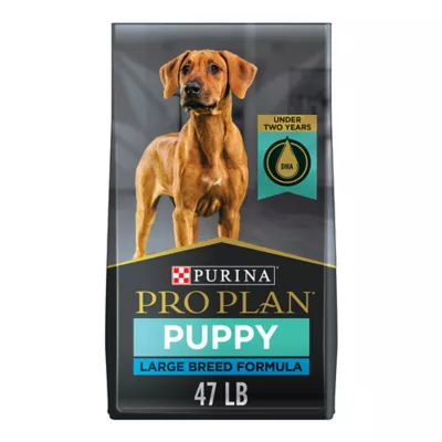 Give your large breed puppy the wholesome nutrition he needs with Purina Pro Plan Brand Dog Food Puppy Large Breed Chicken and Rice Formula dry puppy food. High-quality protein, including chicken as the first ingredient, provides the building blocks he needs to maintain his active lifestyle, and the specially formulated recipe is designed for puppies weighing over 50 pounds at maturity. Every high-quality ingredient in this super-premium dry puppy food is carefully chosen for a specific nutritional or functional purpose, so you can take comfort in knowing your large breed puppy is getting purposeful nutrition. Crunchy kibble and a delicious flavor tempt him to his dish at mealtime, and antioxidants support his developing immune system. Make this dry puppy food part of your puppy's complete and balanced diet, and show him you care about his overall health and happiness.
