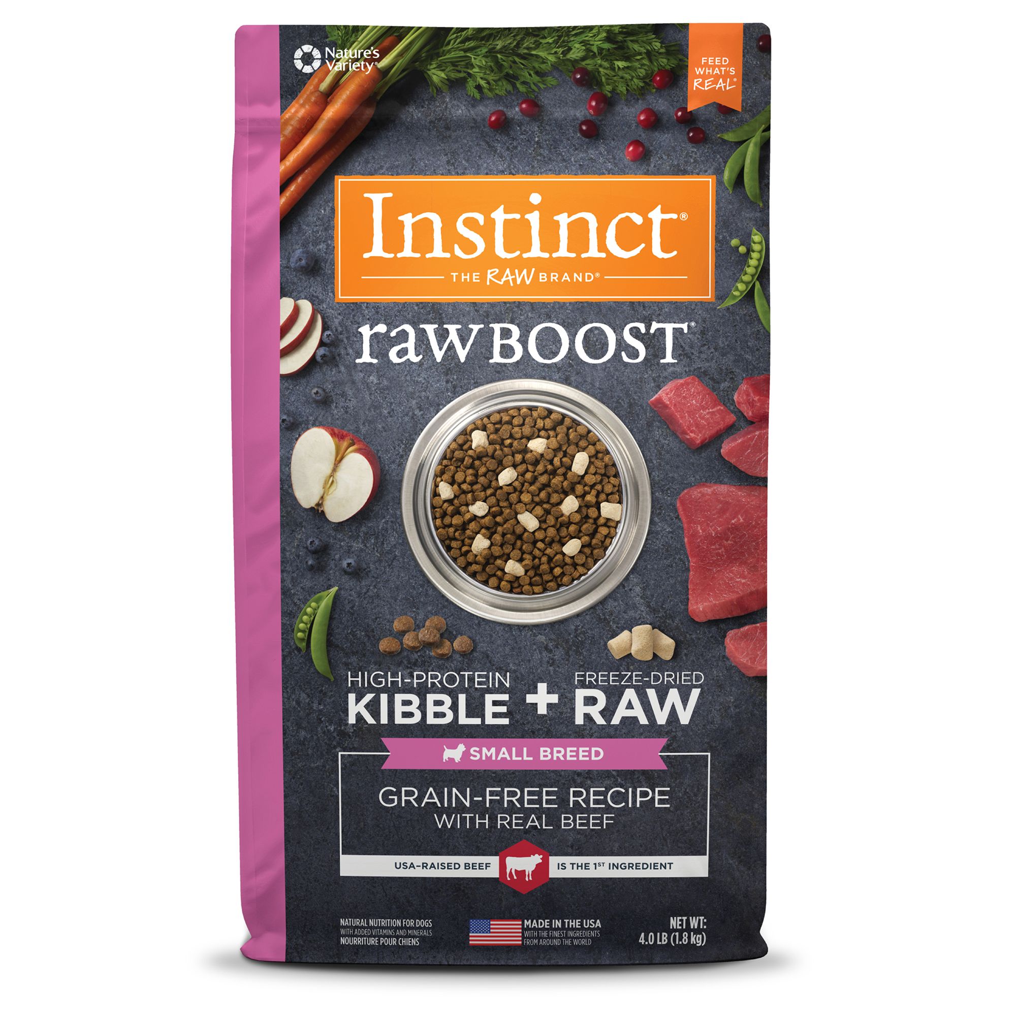 Ingredients: Beef, chicken, oats, peas, barley, beef liver, flaxseed, dicalcium phosphate, natural beef flavor, dried whey protein concentrate, salt, potassium chloride, vitamins [vitamin A supplement, vitamin D3 supplement, vitamin E supplement, thiamine mononitrate (vitamin B1), riboflavin (vitamin B2), calcium pantothenate (vitamin B5), pyridoxine hydrochloride (vitamin B6), folic acid, vitamin B12 supplement, niacin supplement], fish oil, dried kelp, taurine, minerals [iron amino acid chelate, copper amino acid chelate, manganese amino acid chelate, zinc amino acid chelate, sodium selenite], choline chloride, mixed tocopherols (preservative), rosemary extract.