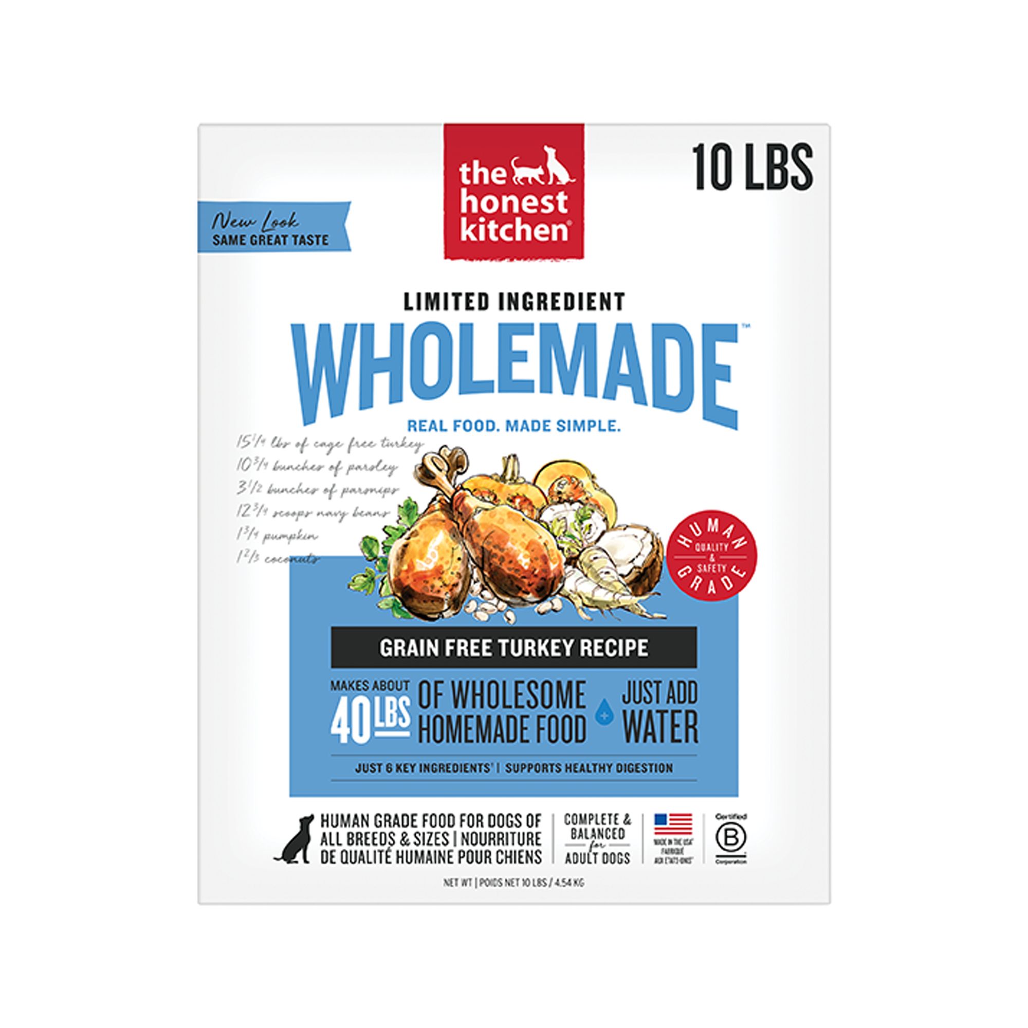 REAL FOOD WITHOUT THE HASSLE- Real ingredients, gently dehydrated to preserve flavor and nutrition, offering a shelf–stable, affordable alternative to fresh, raw, homemade, and freeze–dried dog food.MAKES 40 LBS OF FOOD- Just add water to make up to 40 pounds of real food that can be served as a full meal or healthy topper, or paired with a lick mat or enrichment toy.LIMITED INGREDIENT FOOD FOR PUPPIES & ADULT DOGS- Made with just 6 key ingredients and a single animal protein source. Suitable for adult dogs and puppies of all breeds and sizes, including large breed puppies and adult mothers (gestation/lactation).HUMAN GRADE- Crafted with high–quality, human grade ingredients and produced to the same standards of quality and safety as the food you eat. This recipe is also made without potatoes, peas or lentils.MADE IN THE USA- Proudly made in the USA with ingredients sourced from trusted suppliers around