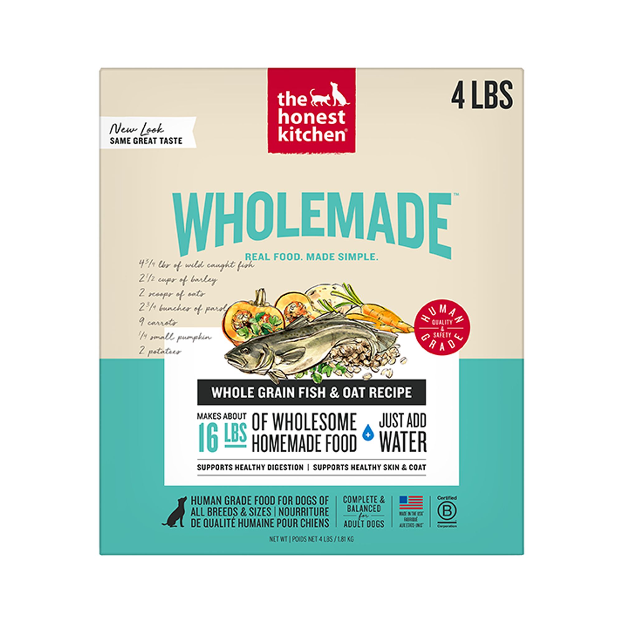 high-quality ingredients you recognize, like ranch raised beef, wild caught salmon, oats and broccoli, just add warm water, wait 3 minutes, and watch your dog's tail wag with excitement. Serve as a complete meal, a nutritious topper or paired with your dog's favorite enrichment toy.