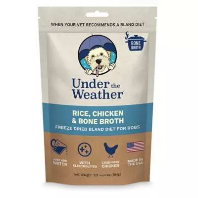 Finally, there is a convenient and healthy bland diet option without all the prep! This rice, chicken and bone broth formula will help to sooth your dog's tummy until healthy digestion is restored, or for as long as your veterinarian recommends. Our freeze-dried formula is enhanced with powerful electrolytes to boost hydration and energy. Bone Broth is added to boost immunity and offer additional digestive support. With a 3-year shelf life, you can always be prepared, and with our simple and natural ingredients, you can feel good about what you are serving your dog!