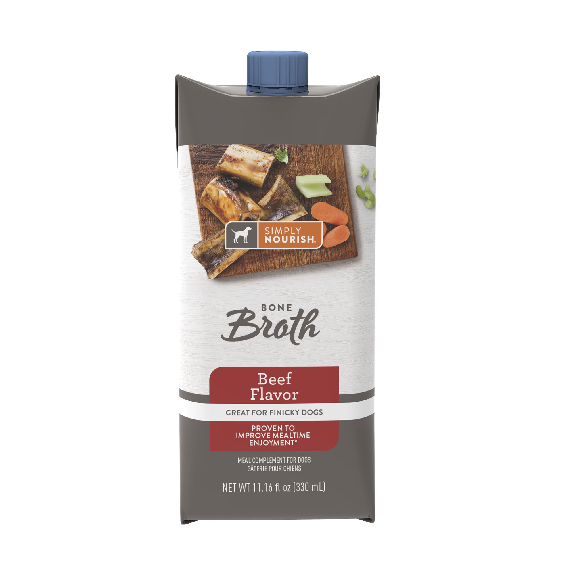 Increase moisture in your dog's and cat's diets with Merrick Grain Free Beef Bone Broth added as a dog food topper and cat food broth to your pet's bowl. This natural dog food and natural cat food is a human grade meal topper that adds extra moisture and flavor to your pet's diet. Now available for cats, this cat bone broth topper is accented with superfoods and unique spices including cinnamon, turmeric and ginger. This grain free beef bone broth meal mixers for dogs and cats can be used as a sensitive stomach dog food topper. Serve beef bone broth Merrick dog treats on top of dry natural dog food, as a savory dog treat or mixed with freeze dried raw bits in place of water as a savory beef meal mixer for dogs. Merrick bone broth was proudly founded in Hereford, Texas.