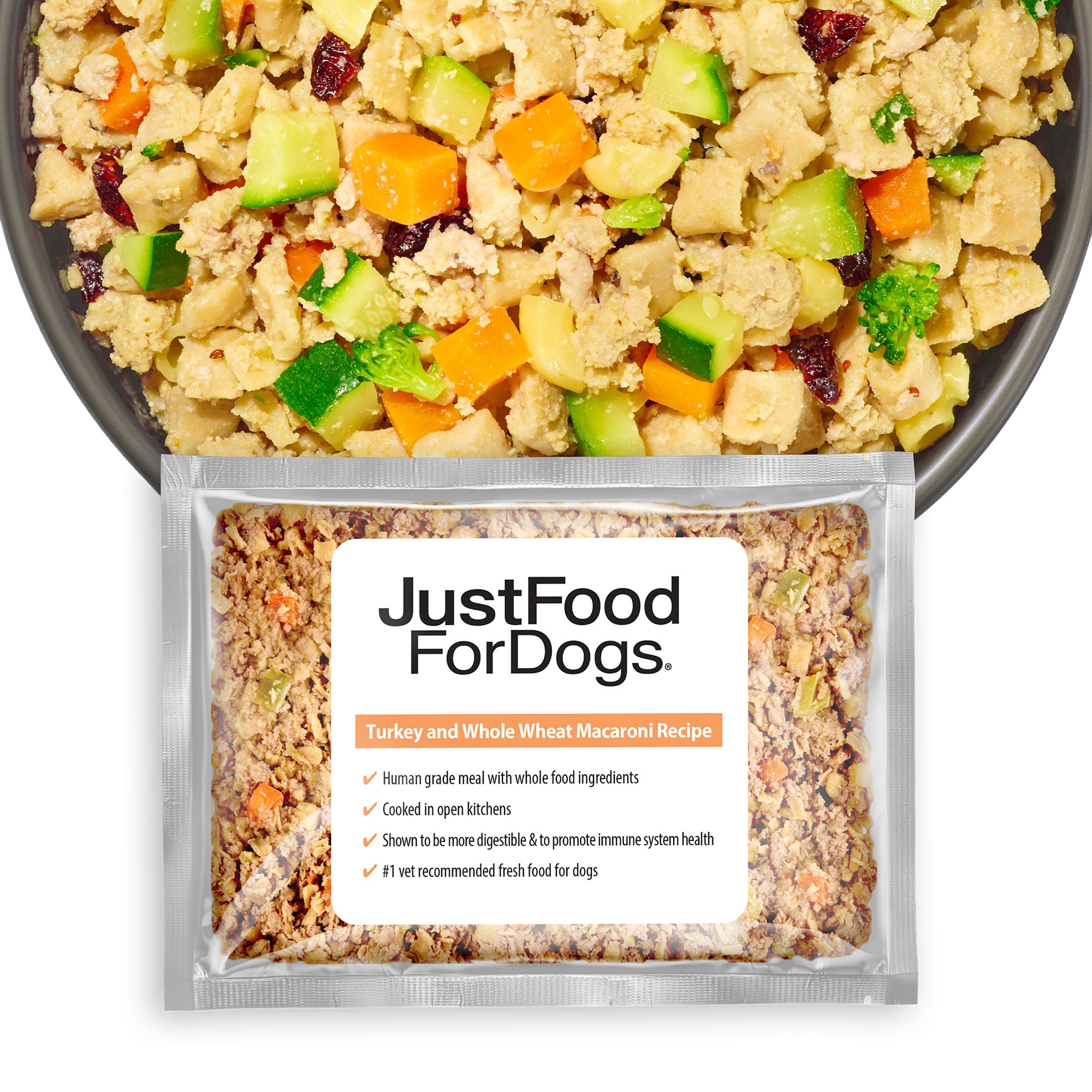 Features & Benefits: Simple ingredients with proven health benefits. No artificial preservatives, colors, flavors, or additives. Digestive health supported by prebiotics from green peas and pumpkin. Skin and coat supported by Omega–3 and 6 fatty acids from fish oil. Healthy metabolism supported by B vitamins and essential minerals in turkey. Healthy vision supported by antioxidants and Vitamin A from carrots. Made without chicken for dogs with sensitivities. Complete and Balanced for all dog sizes and life stages. Made in the USA. Keep Refrigerated, Use within 7 days of opening.