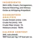 Guaranteed Analysis: Crude Protein (min) 2.5%Crude Fat (min) 14%Crude Fiber (max) 1%Moisture (max) 79.5%