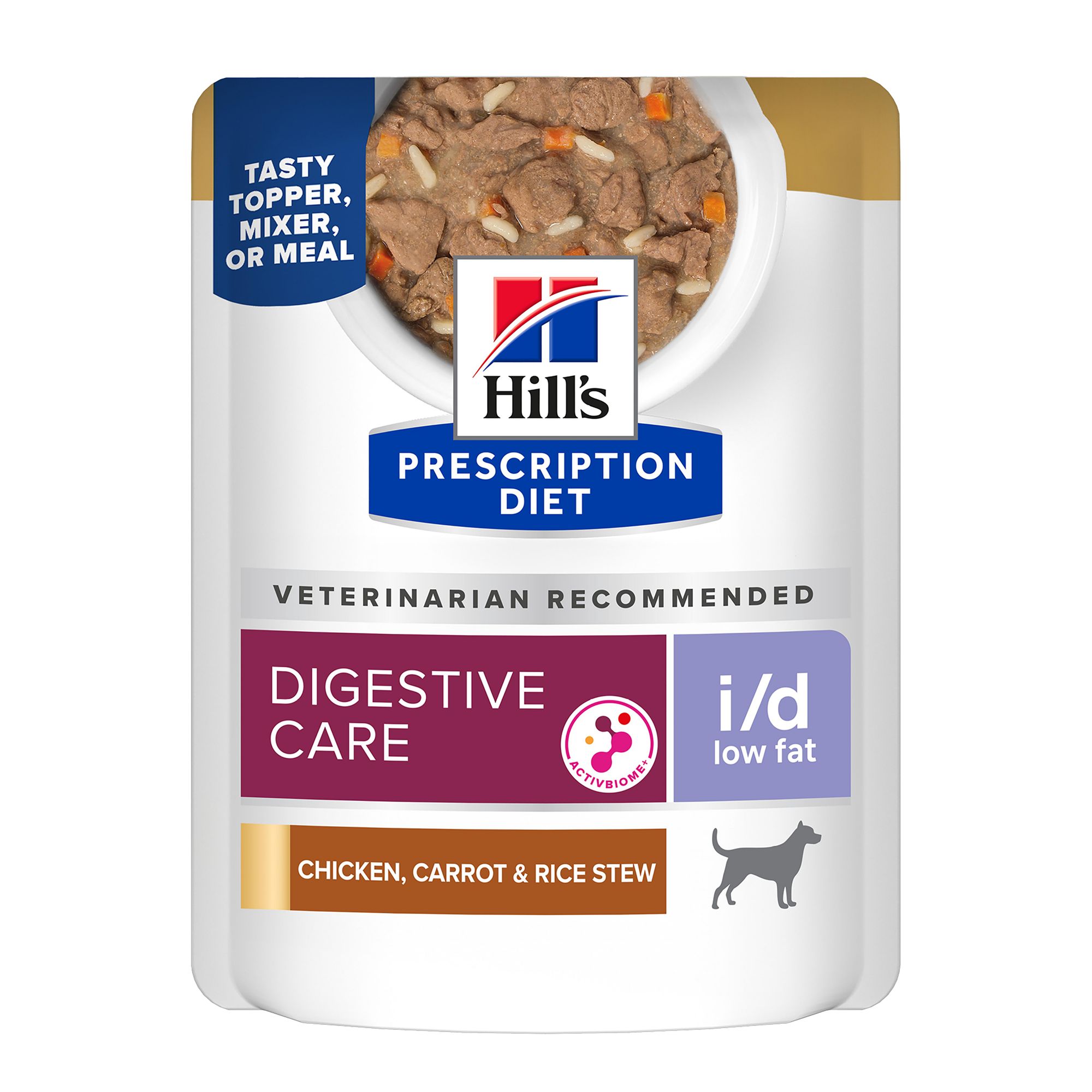 Features & Benefits: . Hill's Prescription Diet i⁄d Wet Puppy Food is specially formulated by Hill's nutritionists and veterinarians to support puppies' digestive health.. Nutrition formulated to help settle digestive upsets in puppies.. Highly digestible formula to support easy nutrient absorption.. Made with ActivBiome+ Digestion, a proprietary blend of prebiotic fibers shown to rapidly activate the gut microbiome to support digestive health and well–being.. High levels of B vitamins and added electrolytes help replace lost nutrients from digestive upset.. Clinically proven antioxidants to support a healthy immune system.. Omega–3 & 6 fatty acids support healthy skin and luxurious coat.. Vet Recommended Nutrition, Pet Approved Taste.