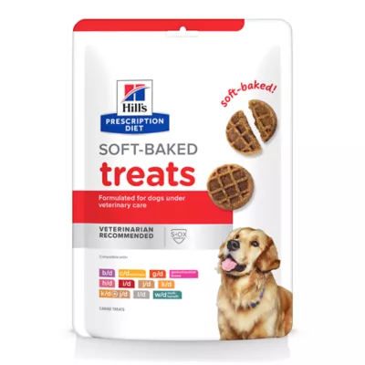 Every dog deserves a treat, and Hill's Prescription Diet Soft Baked Treats Dog Treats help to make that possible without compromising their diet. A delicious, soft baked treat that's easy for older dogs to enjoy, it&339;s chockfull of goodness to support kidney, heart and joint health. And because some dogs have special nutritional needs, the tasty recipe will not compromise the effectiveness of certain Prescription Diet foods, including Prescription Diet b/d Canine, c/d Canine, g/d Canine, h/d Canine, w/d and k/d Canine.