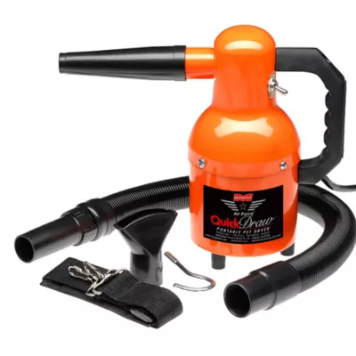 Grooming your dog after an unexpected roll in the mud doesnât have to take hours. With the MetroVac Air Force Quick Draw Portable Pet Dryer, you can rest easy knowing that it's possible to dry your pet in minutes! The hand held Air Force Quick Draw produces 10 times more blowing power than a human hair dryer and best of all its SAFE for all pets because there's no heating element to dry out their coats or burn their skin.