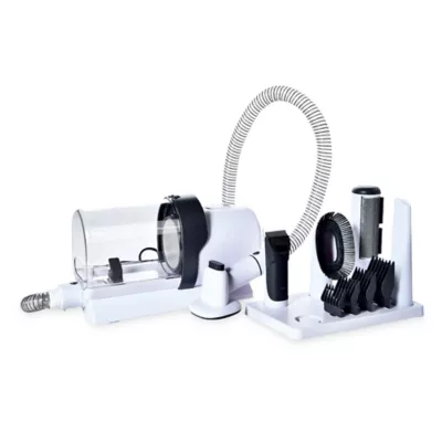The Top Paw® At-Home Pet Grooming Kit is perfect for keeping your pet looking its best, and doing so in stress-free fashion. Grooming your pet is essential to helping them maintain healthy skin and a shiny coat. However, taking them to a grooming salon can become a stressful experience if your pet deals with separation anxiety or other behavioral challenges. Using this grooming kit can help alleviate their stress by bringing the resources of a professional style groom into the comfort of your own home. With multiple attachments to choose from including a variety of clipping combs and grooming brushes, you're in control of the experience with everything you need. This kit is designed with a built-in vacuum that collects your pet's hair and dust while grooming; making things clean, simple and stress-free. Only at PetSmart.
