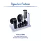 Includes: 1 Vacuum with hose, 1 Grooming Brush, 1 Hair Remover, 1 Nozzle, 1 Tool Stand, 4 Clipping Combs, 1 Cleaning Brush, 1 Electric Clipper