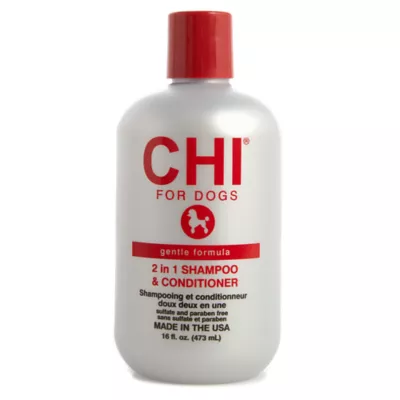CHI for Dogs Gentle Formula 2-in-1 Shampoo & Conditioner is luxurious and pH balanced for all dogs. It helps remove debris and dirt while restoring shine, luster, and softness to your dog's coat and skin. In one easy step, your dog will look and feel their best.