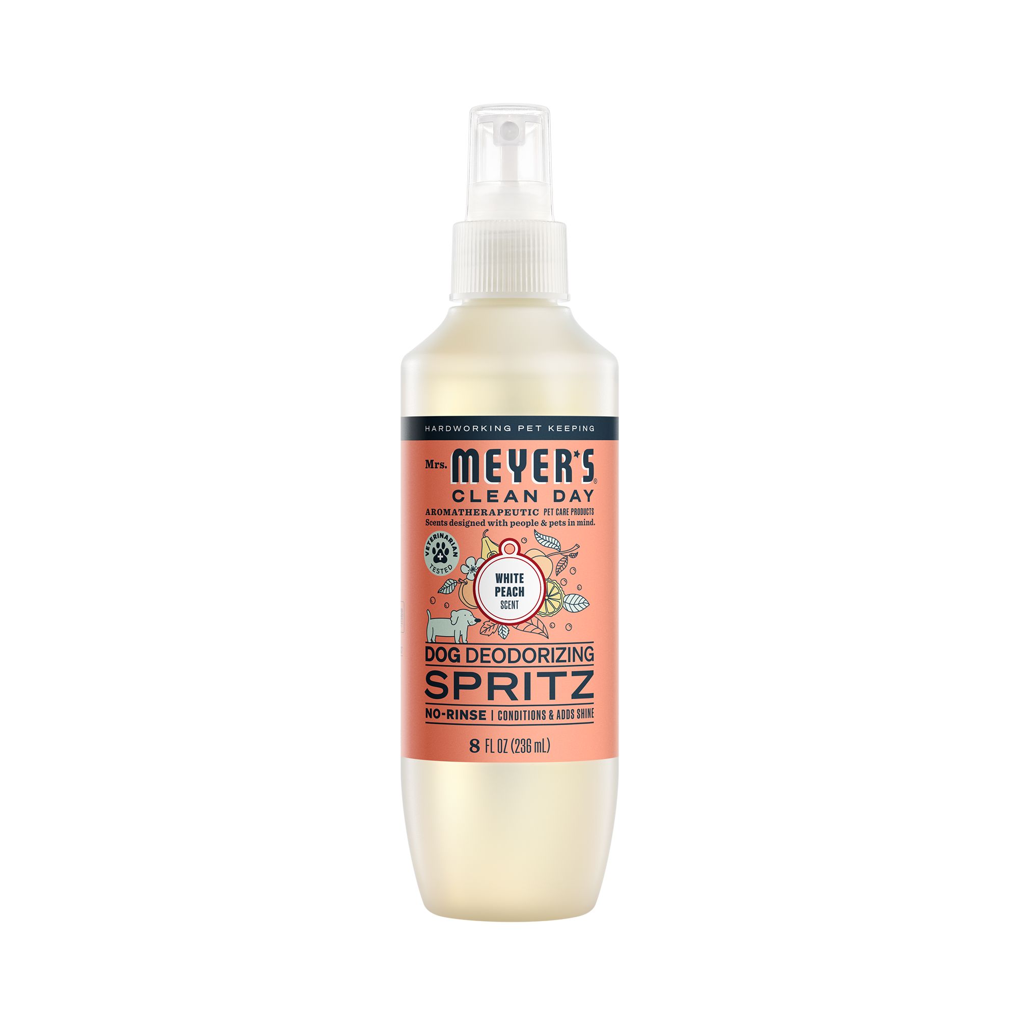 Mrs. Meyer's Clean Day, now for your pets. Our new pet grooming products keep your four-legged friends happy and clean (while taming their smells and stinks). Gentle yet effective, this shampoo cleanses, conditions, and deodorizes your dog's skin and coat, while leaving a soft scent behind. Because all dogs deserve a little paws and relaxation.