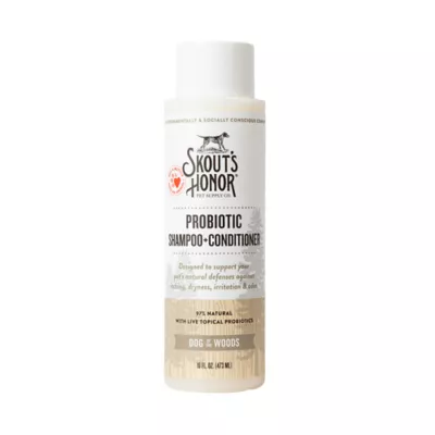 Skout's Honor Probiotic Dog of Woods Shampoo & Conditioner gently cleans and moisturizes the coat, leaving fur silky and smooth. Hydrating, conditioning, and non-medicated, this shampoo and conditioner contains avocado oil and topical probiotics that help support a healthy microbiome to defend against common skin problems such as itching, odor, dryness, dandruff, hot spots, yeast and excessive shedding. At Skout's Honor, our goal is simple: curate the best technologies and create products that greatly improve the experience of living with and loving our pets.