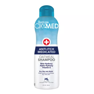 Description and Overview: OxyMed Dry Skin Itch Relief Medicated Shampoo contains a gentle yet powerful combination of alpha hydroxy, beta hydroxy, and tea tree oil that exfoliates the skin's surface and penetrates deep into the pores to cleanse and help soothe dry, itchy, irritated, and inflamed skin. This refreshing, deep–cleansing dog shampoo for itchy skin is enhanced to effectively moisturize and condition the skin and coat while providing soothing relief from dry skin.