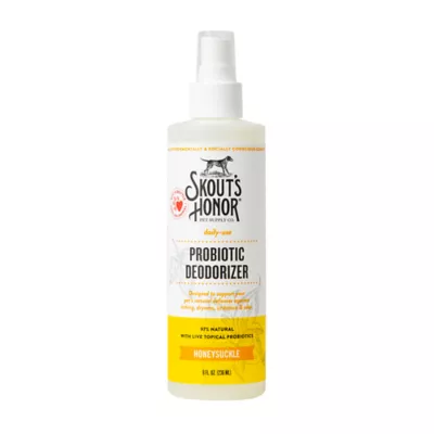 Skout's Honor Probiotic Honeysuckle Daily Use Deodorizer hydrates and deodorizes the skin and coat for a fresher, better-smelling pet in between washes. Hydrating, non-medicated, and for daily use, it contains avocado oil and topical probiotics that help support a healthy microbiome to defend against common skin problems such as itching, odor, dryness, dandruff, hot spots, yeast and excessive shedding. At Skout's Honor, our goal is simple: curate the best technologies and create products that greatly improve the experience of living with and loving our pets.