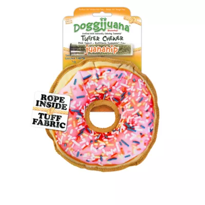 - Satisfies natural chewing instincts; Great for Play & Chill - Keeps dogs entertained & stress–free. Stuff, play, and let the good vibes roll with the Doggijuana® Pink Donut Tuffer Chewer® Juananip™