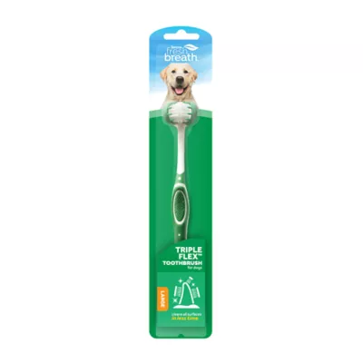DESCRIPTION The Fresh Breath by Tropiclean TripleFlex Toothbrush for dogs is the perfect toothbrush for your dog. This toothbrush cleans 3 times faster with its 360-degree bristles for an easy clean, helping your dog to maintain optimal dental health.