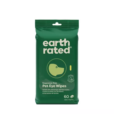 DESCRIPTION Cleanse your dog or cat's eyes and reduce tear stains in a blink with Earth Rated Pet Eye Wipes. Hypoallergenic and formulated with calming chamomile and the perfect amount of moisture, each wipe measures 5 in x 5 in/ 12.7 cm x 12.7 cm - large enough to give both eyes a good clean. Made from 100% FSC-Certified plant-based viscose fibres, this super soft material is durable enough to lift dirt, discharge, and brown or reddish stains around the eyes, gently and effectively. Leaping Bunny cruelty-free certified and fragrance-free for a non-irritating clean. Earth Rated Pet Eye Wipes are thoughtfully designed to help you take care of your pet's eyes in just a few swipes.