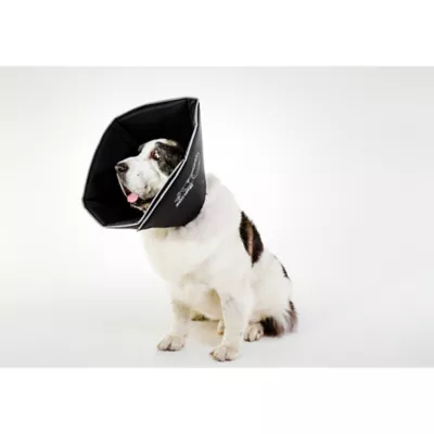 The original Comfy Cone, the only patented soft cone-shaped e-collar with removable stays for dogs and cats, is veterinary tested and approved. Leave stays in for more structure for medical needs or when leaving your pet alone. While supervising your pet, you can remove the stays to fold the cone back for more freedom while eating and drinking. Made of patented nylon fabric laminated onto ½ inch foam which is soft and yielding while being very sturdy and protective. Has elastic loops to thread the pets own collar through to keep the Comfy Cone secure in place and keeping it from being pulled off or from falling off. Unique reflective binding to help protect you and your pet while going outside at night for walks and bathroom breaks. More eco-friendly than the plastic e-collar.