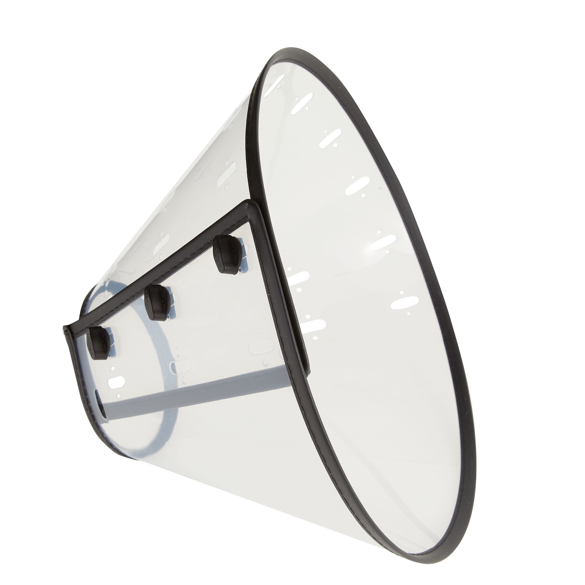 Has elastic loops to thread the pets own collar through to keep the Comfy Cone secure in place and keeping it from being pulled off or from falling off.