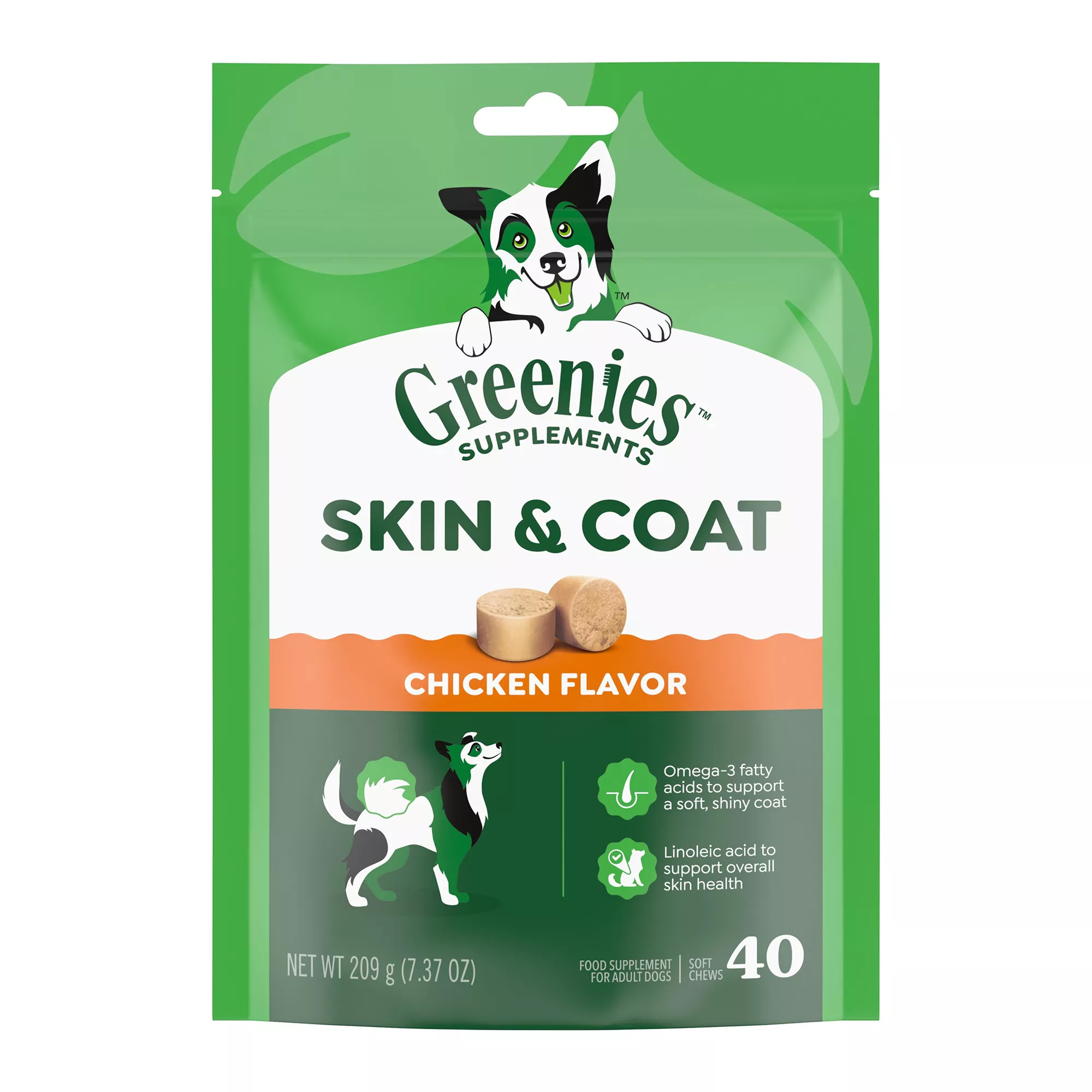 Greenies Skin and Coat Sensitive Care Supplement for Dogs, Peanut Butter Flavor, 80 Count Tub