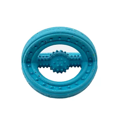 Description and Overview: True innovation isn't just new and different. It's new and better. Max Fusion is changing the game from the ground up by combining Nike rubber soles from manufacturing scraps and unused materials with pure, natural rubber into revolutionary, new dog toys. Have hours of fun playing indoors or outside, playing tug of war! Multiple handles for you hold with textured grooves for your dog to grab. Natural rubber stretches as your dog pulls and springs back to life! Improve your dog's dental health – the soft, small bumps stimulate gums and increase saliva which helps to reduce plaque and tartar. Enjoy playing indoors or outside, tossing this soft rubber toy all over the yard or park. Easy to grip and hold in your hand and in your dog's mouth, this toy bounces in all different directions. Dogs love to blaze new trails. Their passion for play and our drive for innovation is the heart and sole of Max Fusion and Nike Grind.