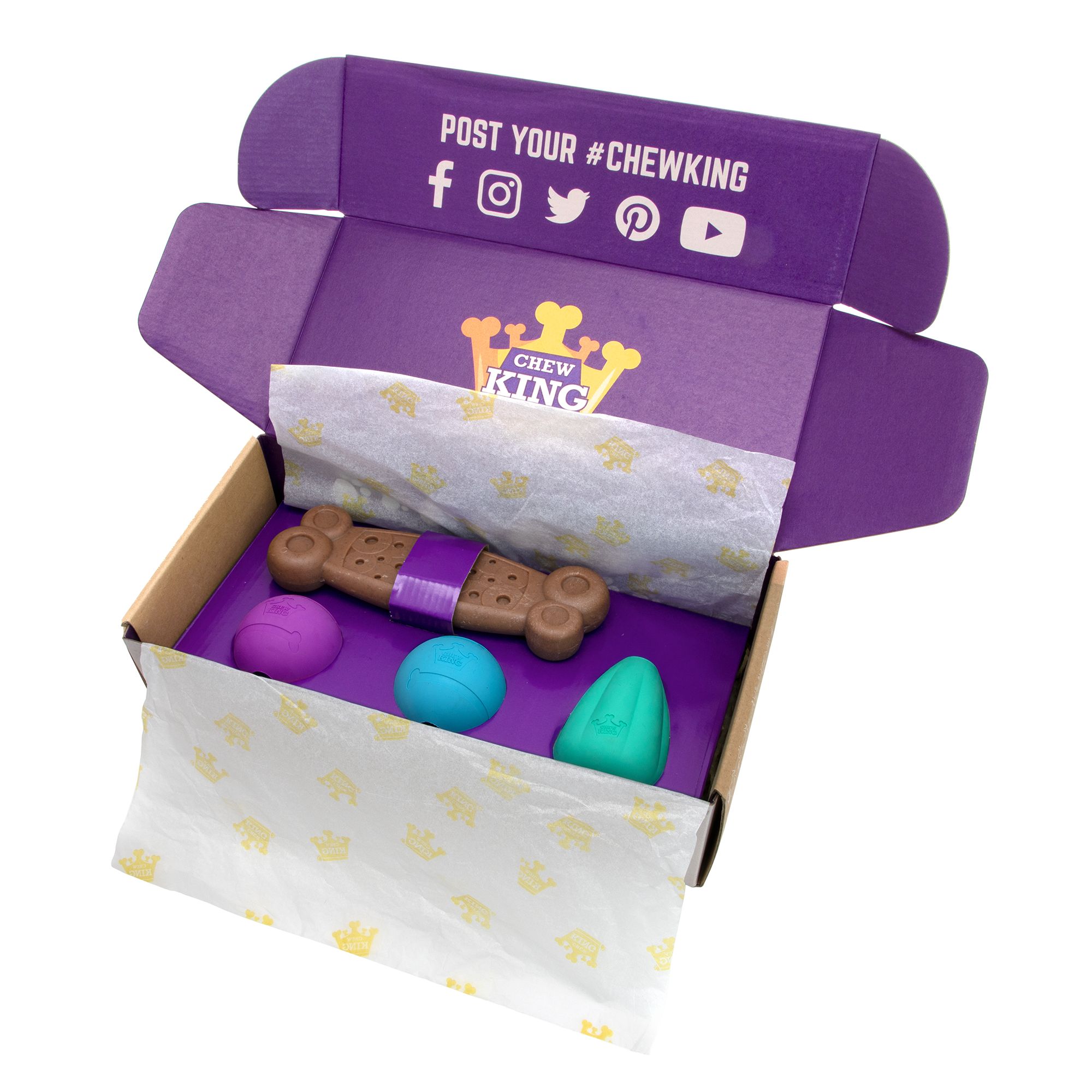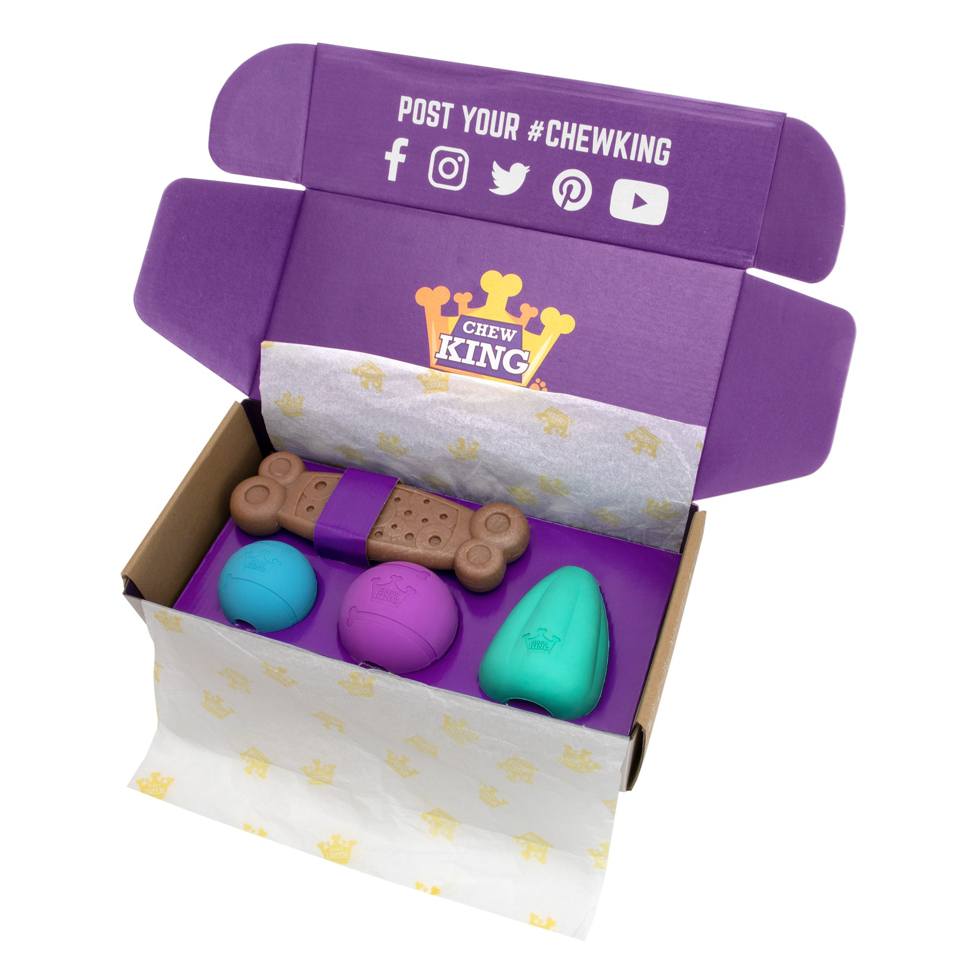 A FETCH TOY THAT RULES: By royal decree, this day in the park is going to be a blast! The Chew King Scepter Toy flies, bounces, crinkles and squeaks - it makes for a fetch toy that engages your pet like no other.NATURAL RUBBER MATERIALS: The main body of the Scepter Toy is made of natural rubber. It has no chemical smell and it's quite durable as well! Withstands serious chomping in the course of play.CRINKLY FUN: Inside the body of the Scepter is a thin layer of safe, non-toxic polyethylene that crinkles with every grab, pull and chew. It's the sort of additional touch that makes a dog go nuts during play time.BUILT-IN SQUEAKER CROWNS IT OFF: Inside the crown of the scepter is a rubber squeak toy. Along with the crinkly body, it doubles down on an attention-grabbing way to keep your pet engaged in a game of fetch.EASY TO CLEAN: The natural rubber construction isn't just easy on gums and durable, it's simple to clean as well. Just wash in warm, soapy water then give it a rinse. Your dog's new favorite fetch toy will be ready for another round in no time.