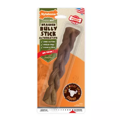 DESCRIPTION The Nylabone Power Chew Alternative Braided Bully Braid Stick satisfies a dog's urge to chew. This fun toy features great bully flavor that your pup will love as he happily chews the day away.