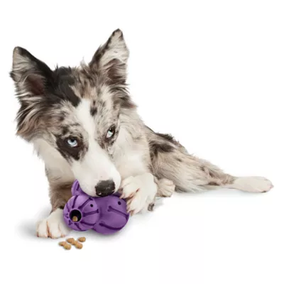 Features: Multiple Treat Options - Choose from3 treat dispensing chambers that can be filled with kibble or treats or bone-shaped grooves that can be filled with spreadable treats, Interactive - This treat dispensing dog toy bounces around unpredictably which keeps your dog moving and offers interactive play fun, Longer Playtime - The combination of multiple treats and unpredictable bounces means longer playtime for your dog, Customizable - You can easily customize the treat rate for your dog with the patented Treat Meters, 5367175, PetSafe Busy Buddy Barnacle, Medium