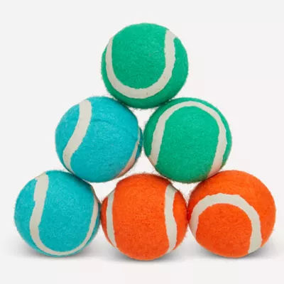 Our Joyhound Tennis Ball Dog Toy is your go-to fetching toy for game day indoors and out. This 6-pack packs a perfect punch for engaging your pup in interactive play, or for use on their own. These fun and colorful tennis balls encourage healthy play to stimulate your dog's natural instinct to sniff, find, and retrieve. New from Joyhound. Only at PetSmart.