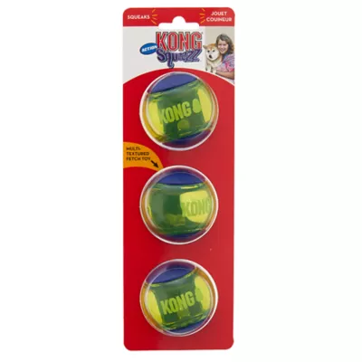 DESCRIPTION Keep your dog active, engaged and entertained with this 3-pack of KONG Squeezz Action Dog Toys. These fun toys are perfect for spirited games of fetch, and will also keep your pup entertained with the playful squeaking sounds they make.