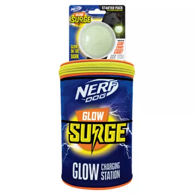 Stay in the game after sunset with the new Nerf Dog Glow Starter Pack! Designed to keep playtime going in low light or night, this set comes with a portable charging case to super-charge your glow toys as well as a rechargeable ultra glow-in-the-dark ball. This kit has everything you need to keep playing that game of fetch after dark!
