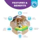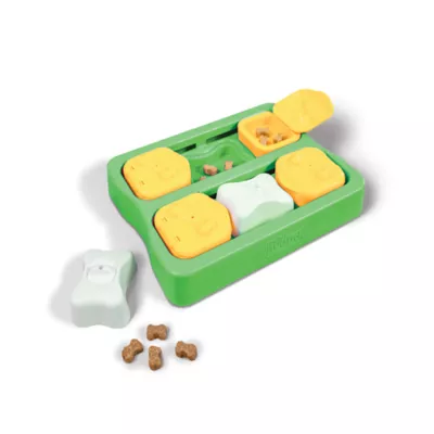 The Nina Ottosson by Outward Hound Dog Brick interactive dog puzzle is a fun way to introduce dog puzzles to your pup and get them excited about problem-solving games! This Level 2 Intermediate dog puzzle keeps dogs busy with treat-focused challenges that stimulate your dog's senses and tap into their natural instincts to hunt and forage for food. As a result, our dog enrichment toys provide mental and physical exercise, help relieve stress, and reduce boredom for happier, healthier pups. The Dog Brick features multiple treat compartments to fill with treats and motivate your dog to solve the puzzle. Watch your dog use their brain to sniff out the treats, then flip open lids, slide the red sliders, and remove dog bone covers to reveal the hidden rewards! Since all dogs are unique, you can vary the level of difficulty of this dog food puzzle to meet your dog's problem-solving ability, with multiple ways to make it easier or harder for your pet. Moreover, this dog treat puzzle is easy to clean and made from food safe materials that are BPA, PVC, lead, and phthalate-free for your convenience and peace of mind.