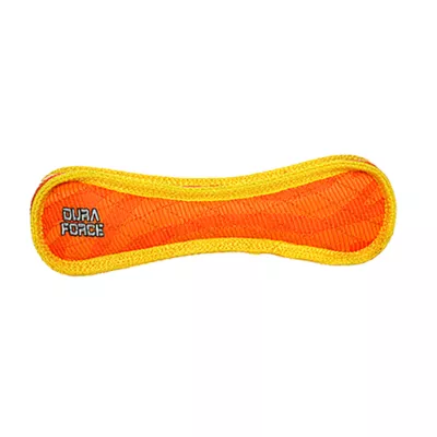 Description and Overview: DuraForce toys are made with durability in mind! The outer layer is made from plastic coated polyester fibers that are woven into a thick mat for durability. The inner layer is made from polyester. Both layers are cross–stitched together to create strength. Each edge of the DuraForce toy is covered with industrial grade webbing to protect the edges. The toy is then sewn again to ensure it stays together in the toughest interactive play. Squeakers are sewn inside protective pouches for your dog's safety. DuraForce toys are built to withstand rigorous interactive play, not aggressive chewing. We use quality, durable materials, but this product is still a "soft" plush dog toy that can be damaged from chewing. Care for your dog like you would your child. Do not allow your pet to swallow any part of ANY brand of dog toy.