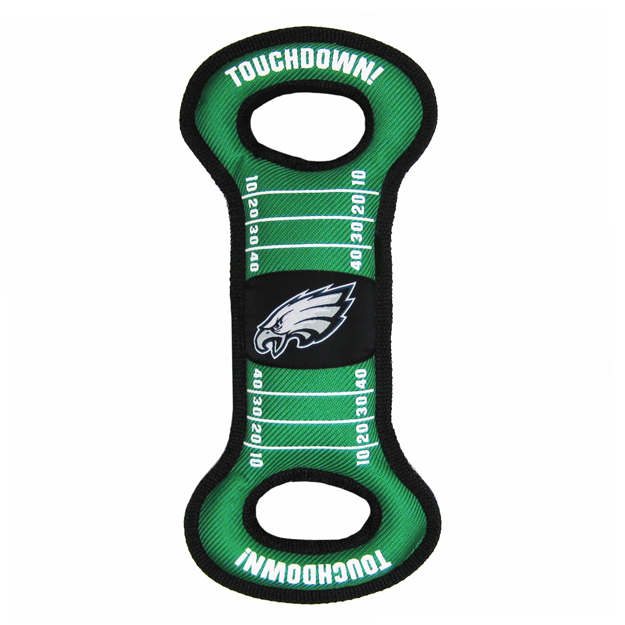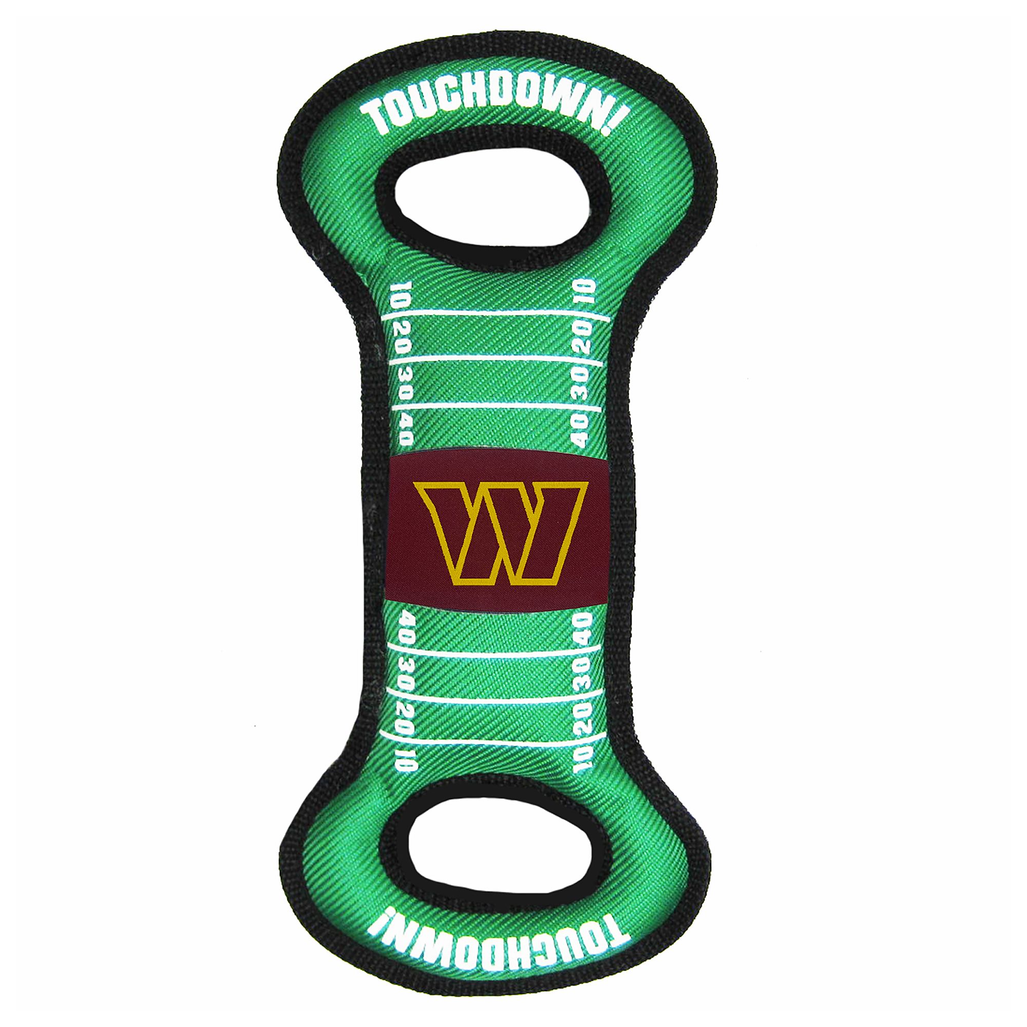 Houston Texans Field Tug Toy. This tough nylon toy comes in the likeness of a football field with your team's logo woven into it. It is perfect for spirited games of tug, and also makes playful squeaking sounds that will keep your pup active and engaged.