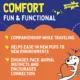 Intended For: Small dogs, medium dogs, large dogs, puppies, dogs with anxiety, relief from dog boredom, soothing dog toy, comfy companion
