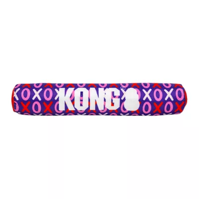 Description and Overview: Mesmerize your pup with a flurry of spinning X's and O's this Valentine's Day with a KONG Signature Stick. Constructed with reinforced layers of durable material, this delightful seasonal toy is designed to withstand countless hours of tugging and fetching. Getting the fun started is easy! It squeaks and rattles to ignite your dog's natural instinct to play. While durable, the Signature Stick also features a soft body that's gentle on teeth and gums. Plus, its tube shape makes it easy for dogs to pick up. This toy makes a fantastic Valentine's gift for that special dog in your life, letting them know how much you love them.