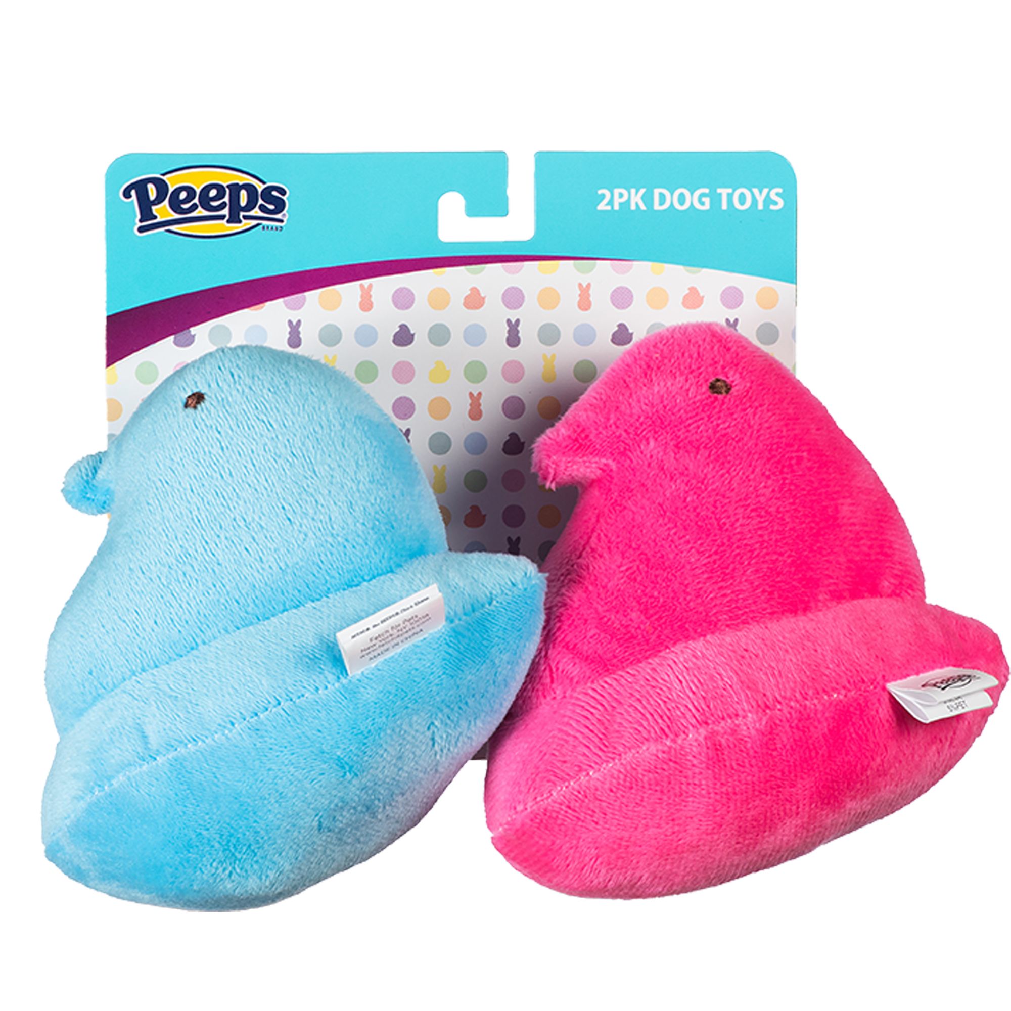 Description and Overview: These PEEPS® dog toys measure 6 inches tall, making it a super cute plush for pups who love to carry, toss, and snuggle plush dog toys. This dog toy set for PEEPS® lovers features pet–safe plush details, meaning it has no hard plastic, sharp corners, or edges. All of the design details are either embroidered or screen printed. As with all dog toys, please supervise your pet when they play with this toy.