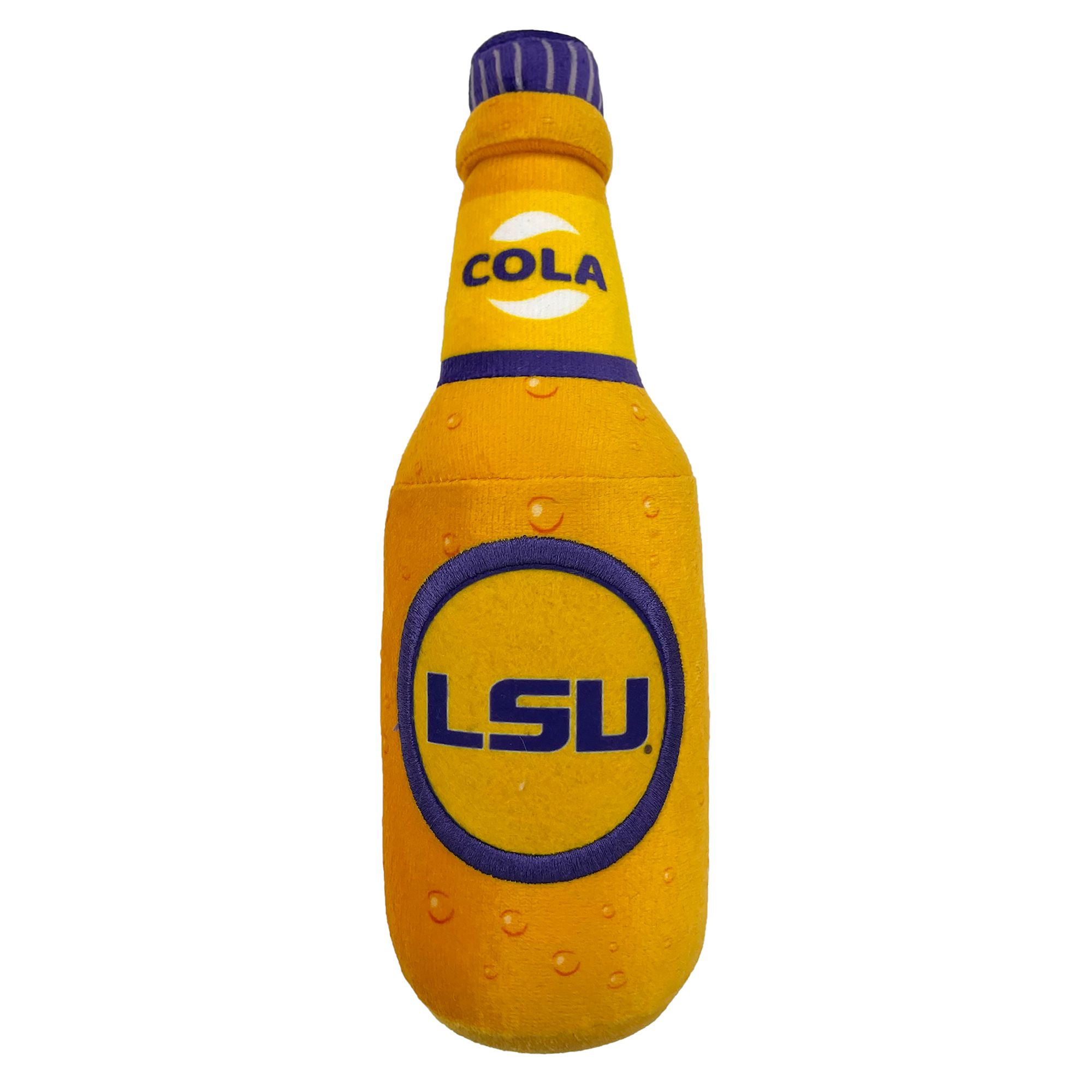 Bring the ballgame home to your furry friend with the Pets First Auburn Tigers Bottle Dog Toy. This plush refreshment looks just like a classic stadium snack and features your favorite team's logo. It's pawfect for long games of catch with your best bud! Each toy includes four squeakers for extra innings of play. Plus, it's made with ultra-soft fabric so your pup can snuggle up before the next game.