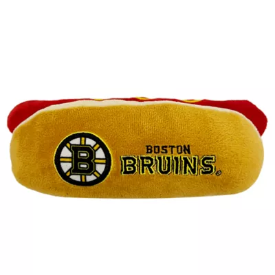 Bring the ballgame home to your furry friend with the Pets First Boston Bruins Hot Dog Pet Toy. This fuzzy footlong looks just like the classic stadium snack and features your favorite team's logo. It's pawfect for long games of catch with your best bud! Each toy includes four squeakers for extra innings of play. Plus, it's made with ultra-soft fabric so your pup can snuggle up before the next game.